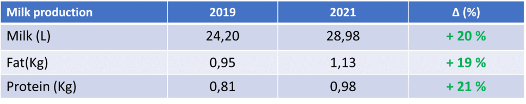- 20 % Steigerung der Milchproduktion (und eine proportionale Steigerung von Fett und Eiweiß)