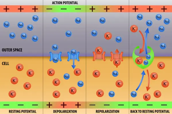 1./ Energie auf Wasser übertragen durch die Wechselwirkung zwischen der von den Permanentmagneten emittierten magnetischen Energie und der kinetischen Energie der Wirbelbewegungen (“This is due to energy transfer from the turbulent flow to the magnetic field, which is amplified proportional to the change of the kinetic energy of the flow “ ; Control over nanocrystalization in turbulent flow in the presence of magnetic fields, S. Kobe 2003). Tatsächlich sehen wir, dass die elektronische Aktivität in dynamisiertem Wasser zunimmt (mehr verfügbare oder freie Elektronen), siehe diesbezüglich die Studie über Bioelektronik von Vincent und spektrometrische Bioscope-Analyse. Diese zusätzliche Energie würde übertragen werden an die Zellmembran uweil es die Membranspannung verändern würde (die Polarität der Plasmamembran, die unsere Zellen umgibt). Dies würde (mit dem Konzentrationsunterschied von intra- und extrazellulären Ionen) dazu beitragen, die Ionenkanäle zu aktivieren, die den Zellstoffwechsel (Ernährung/Entgiftung) steuern; Tatsächlich erzeugt jede leitfähige Flüssigkeit (mineralisiertes Wasser), die sich in einem leitfähigen Rohr (Kupfer) bewegt (Vortex Wirbel) und Magnetfeldern (Permanentmagneten) ausgesetzt wird, erzeugt elektrische Ströme (Elektronen in Bewegung), die das Wasser ionisieren (Änderung der elektrischen Ladung) und wird erzeugen eine Spannung auf der Ebene der Zellmembranen (zur elektrischen Stimulation siehe zu diesem Thema Bradley J. Roth, John P. Wikswo: „The electric potential and the magnetic field of an axon in a nerve bundle„), und zwar proportional zur Geschwindigkeit des Wasserflusses und zur Stärke der Magnetfelder „when a fluid of sufficient conductivity is in motion, the lines of magnetic forces follow the lines of water flow and the magnetic field is proportional to the stretching of the lines and therefore, as the lines of magnetic forces are stretched, the magnetic field will also strengthen“ ; Quelle: Control over nanocrystalization in turbulent flow in the presence of magnetic fields, S. Kobe 2003.