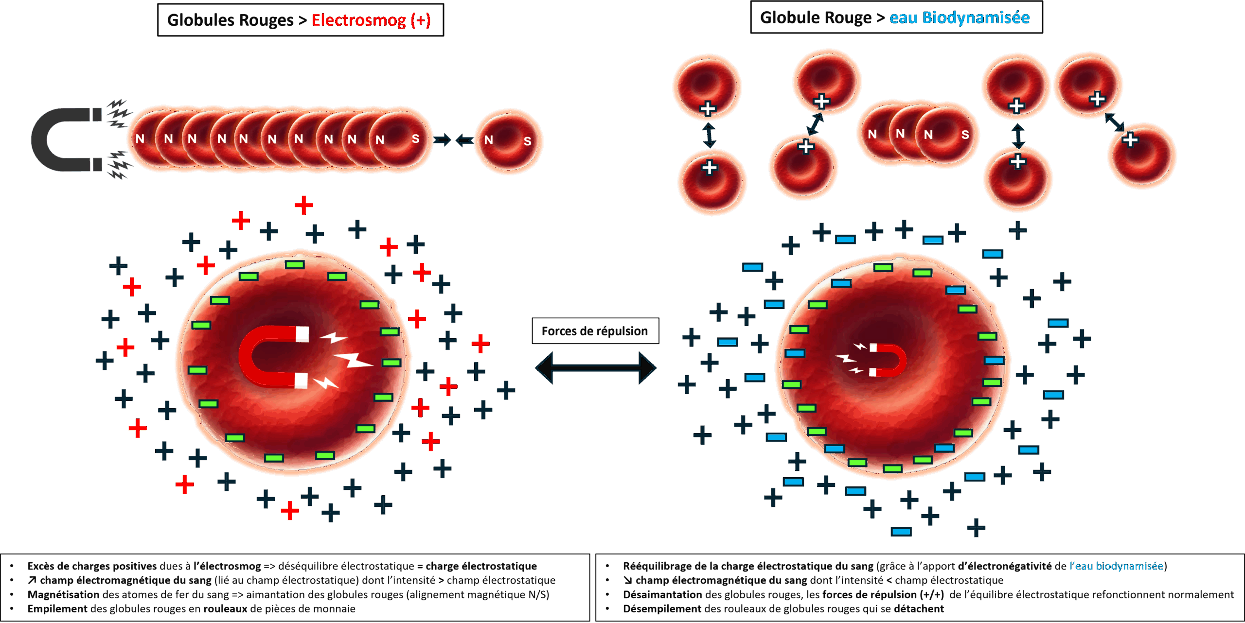 - la dynamisation améliore la diffusion d’oxygène dans l’organisme grâce au désempilement des rouleaux de globules rouges !