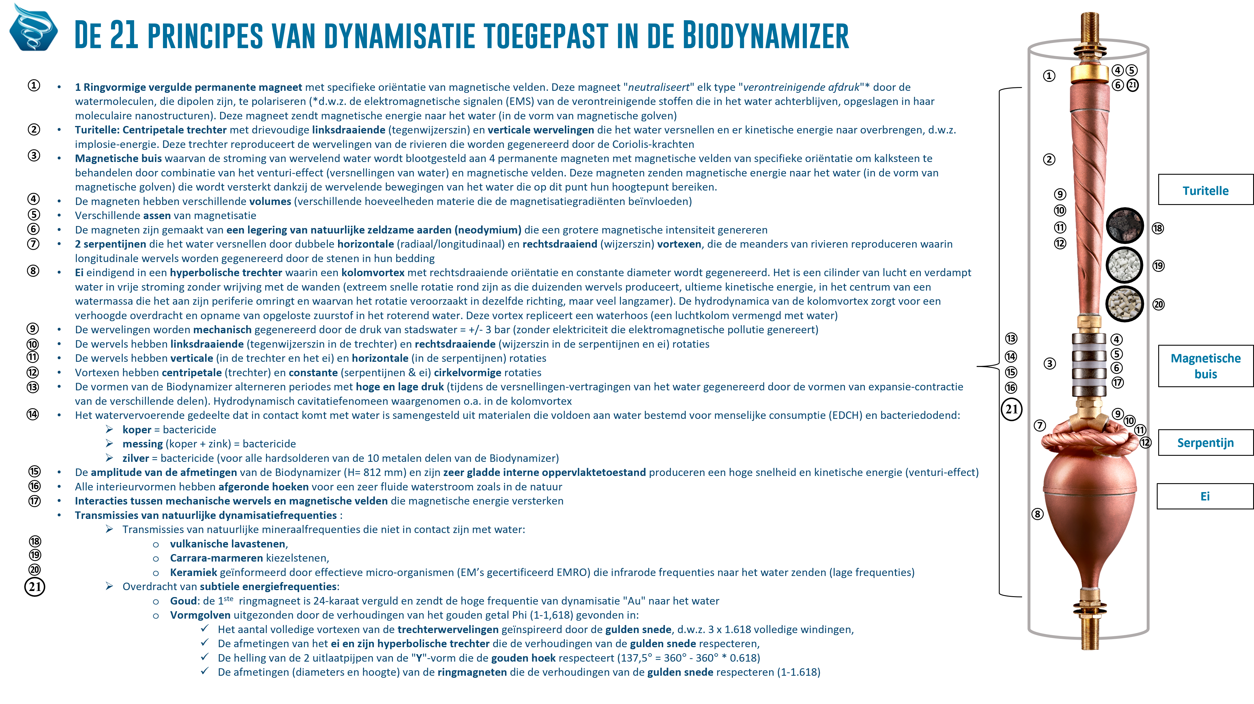 Dynamized Technologies biedt externe productiebedrijven (BtoB) de mogelijkheid om op hun eigen labels en labels onder het beschermd handelsmerk “Biodynamizer®” (zie hieronder) op te nemen om aan de consument mee te delen dat hun product is ontwikkeld dankzij de natuurlijke technologie van dynamisatie van de vloeistoffen van de Biodynamizer. Dit is het meest complete apparaat op de markt omdat het 21 dynamiseringsprincipes toepast! Het is ook het meest wetenschappelijk en empirisch geanalyseerde apparaat (zie onze analysesectie op deze site). Het energetiseringsproces regenereert (dynamiseert) vloeistoffen door de spontane bewegingen van water te reproduceren wanneer het vrij in de natuur stroomt (duizenden wervelbewegingen) en door ze bloot te stellen aan magnetische velden en natuurlijke minerale frequenties. Het merk “Biodynamizer” zal het dus mogelijk maken om de betrokken producten te onderscheiden door ze de natuurlijke en regenererende eigenschappen te geven die ze tijdens hun productie hebben gekregen.