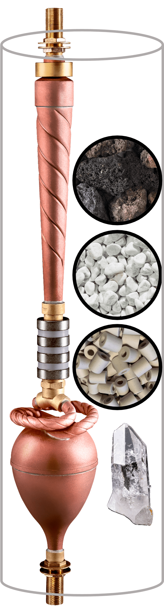 La partie aquifère est entièrement entourée par des minéraux (plus de 10 Kg) issus de la nature: